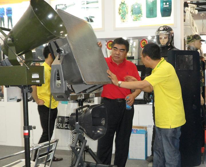 通過技術(shù)攻關(guān),驅(qū)散器產(chǎn)品再添新丁。CDYX-2000型遠(yuǎn)距離聲波定向發(fā)射裝置,聲壓級達(dá)到160db以上,亮相北京2012年5月22日警用裝備展覽會(huì)備受與會(huì)者好評,本款產(chǎn)品突破了以前同類產(chǎn)品最大聲壓級只能達(dá)到153db的技術(shù)瓶頸,大大的提高了有效驅(qū)散距離,從而使驅(qū)散效果和操作人員安全系數(shù)大大提高。本次展會(huì)同時(shí)展出的盾牌型便攜式驅(qū)散器也是我司新近投產(chǎn)的一款單警維和驅(qū)散裝備,此款產(chǎn)品以使用靈活,攜帶輕便為特色,受到一線警員熱情歡迎。